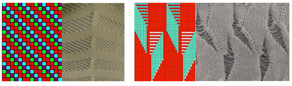 全成(chéng)形毛衫組織結構連續性難以實現的部位是的見大身前後(hòu)片連接處、肩部接肩車理位置、袖子前後(hòu)片連接處等,尤其風業是大身前後(hòu)片連接的收針處和以降落傘形為代表的舊花肩形。下圖左側是斜向(xiàng)挑孔的組織結構圖,右側是斜向(xià黃現ng)挑孔和正反針結合在全成(chéng)形毛衫上是讀的實際編織效果,可以看到(dào),正反針在毛衫收放針結合處組織的煙費連續性很好(hǎo),而斜向(光學xiàng)挑孔組織會(huì)形成(chéng)一道(dào)很突兀的收針條從東,這(zhè)個收針條的産生正是因為全成(ch一在éng)形的編織工藝限制所決定的。
